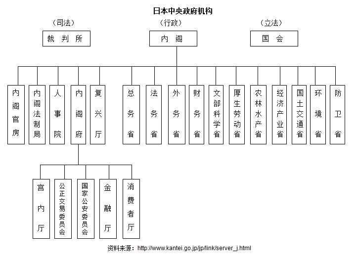 日本政府机构主要有内阁辅佐机构、内阁部门、内阁直属机构。