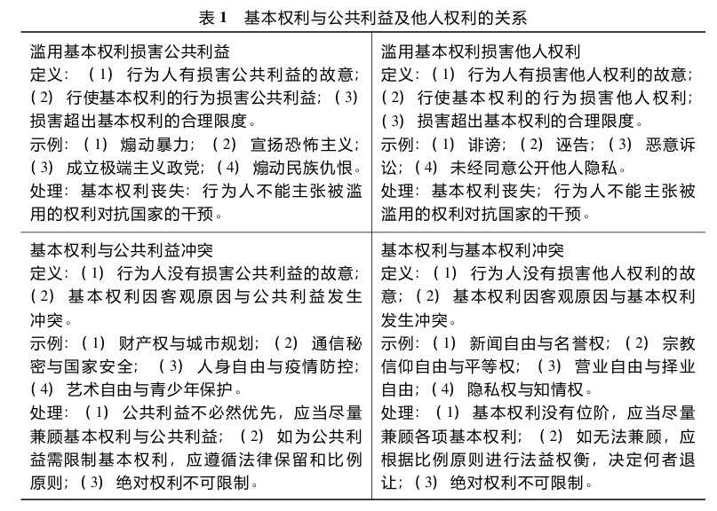 [43]参见王锴:《基本权利保护范围的界定》,载《法学研究》2020年第5期;柳建龙:《论基本权利冲突》,载《中外法学》2021年第6期。