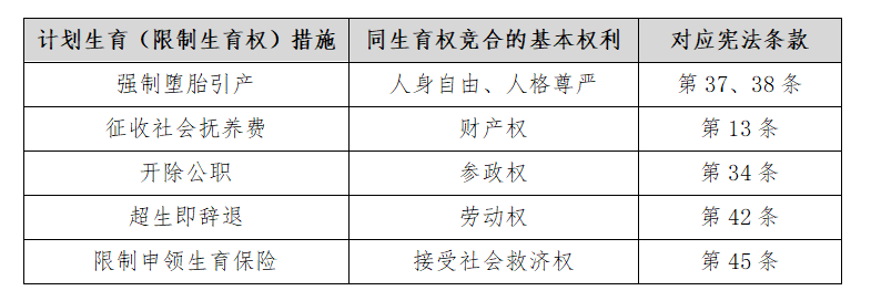 表 1 生育权与其他基本权利的竞合