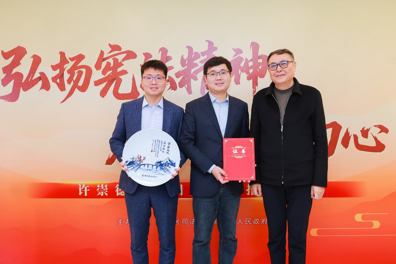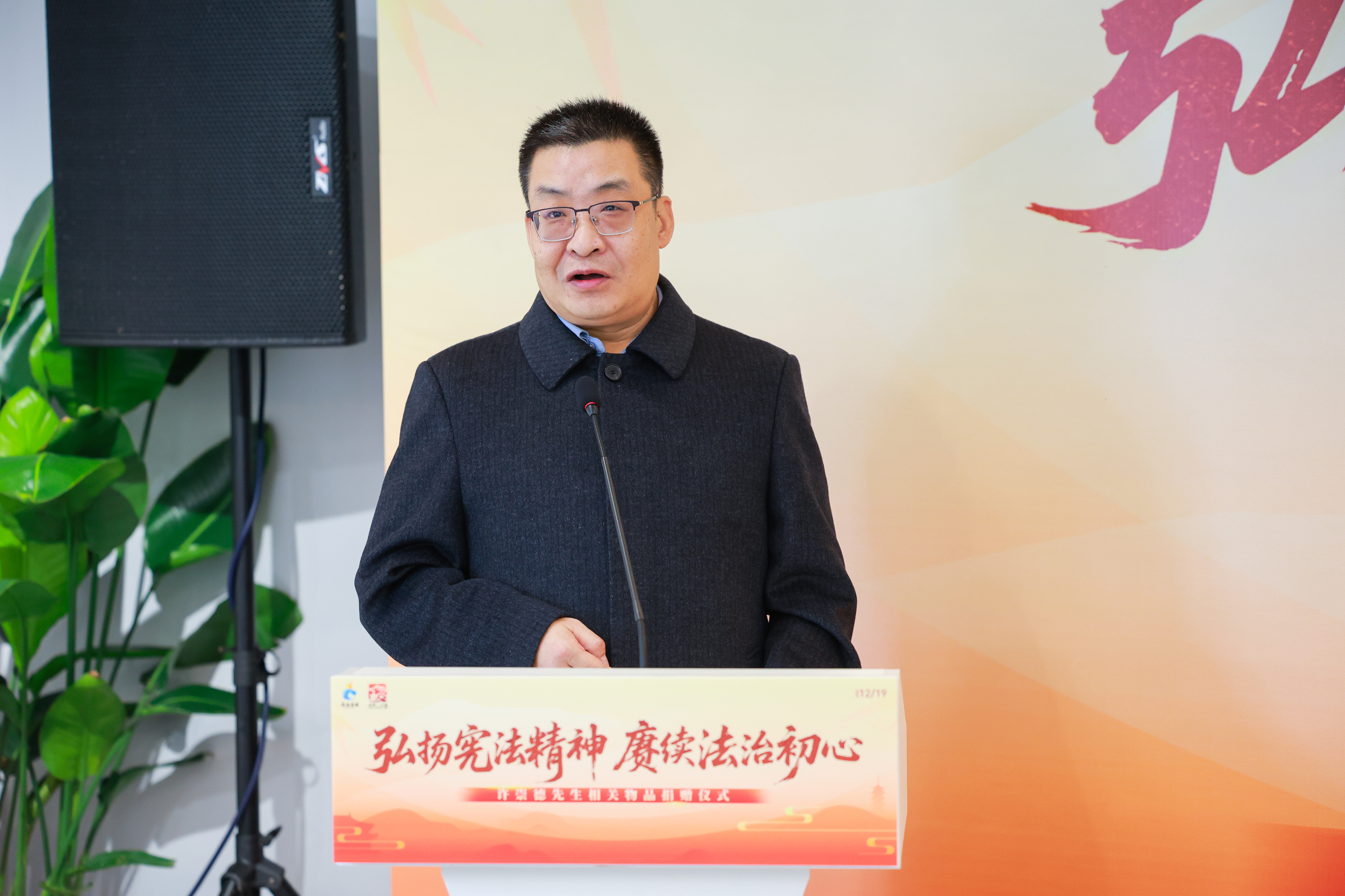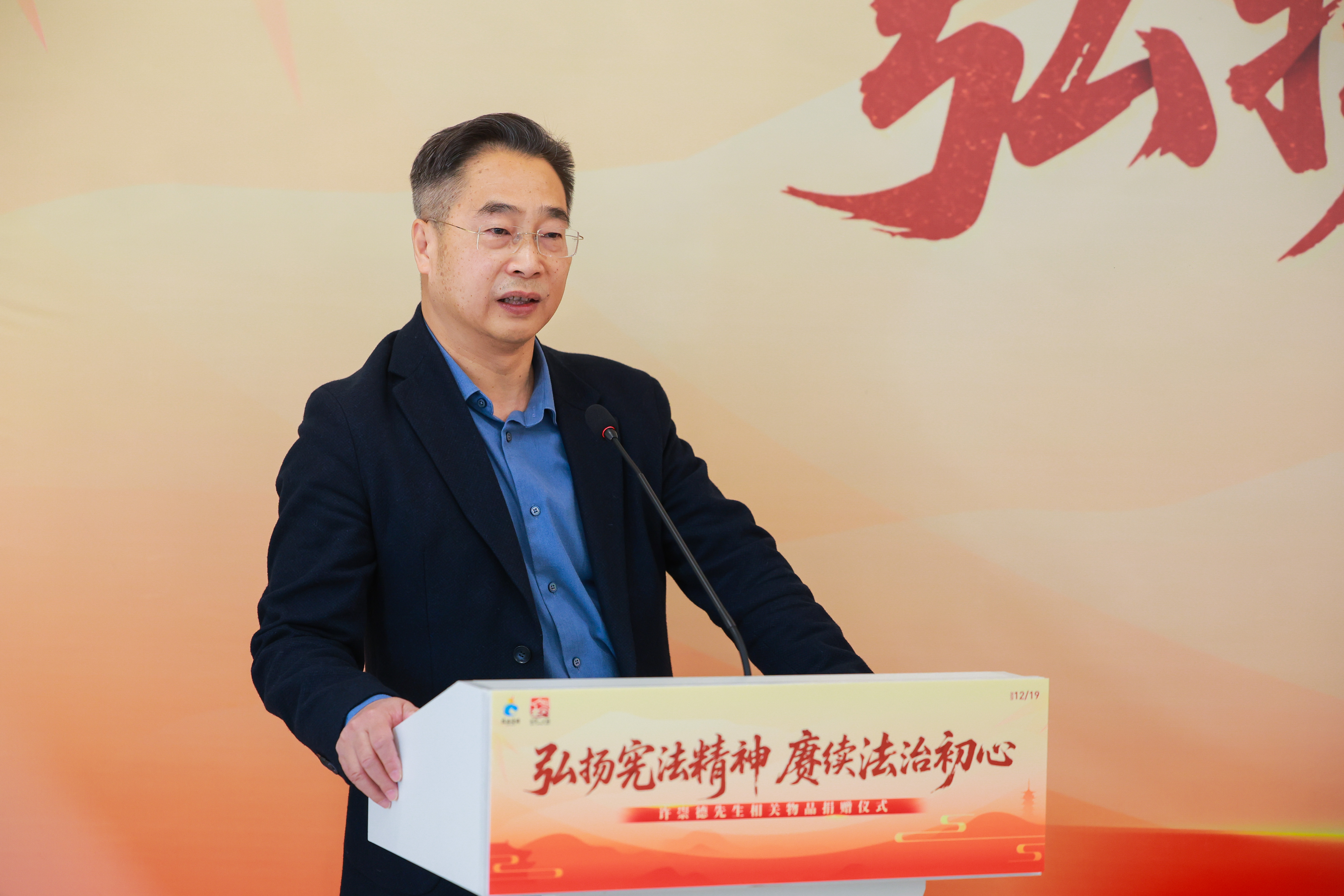 在仪式最后,上海市司法局政治部主任叶忻、青浦区委政法委书记顾骏分别讲话,赞扬许崇德教授治学报国的高尚品格、对法治理想的执着追求和对故土家园的深切眷恋,期待进一步丰富崇德尚法文化馆的展陈内涵与教育功能,弘扬宪法精神、赓续法治初心。